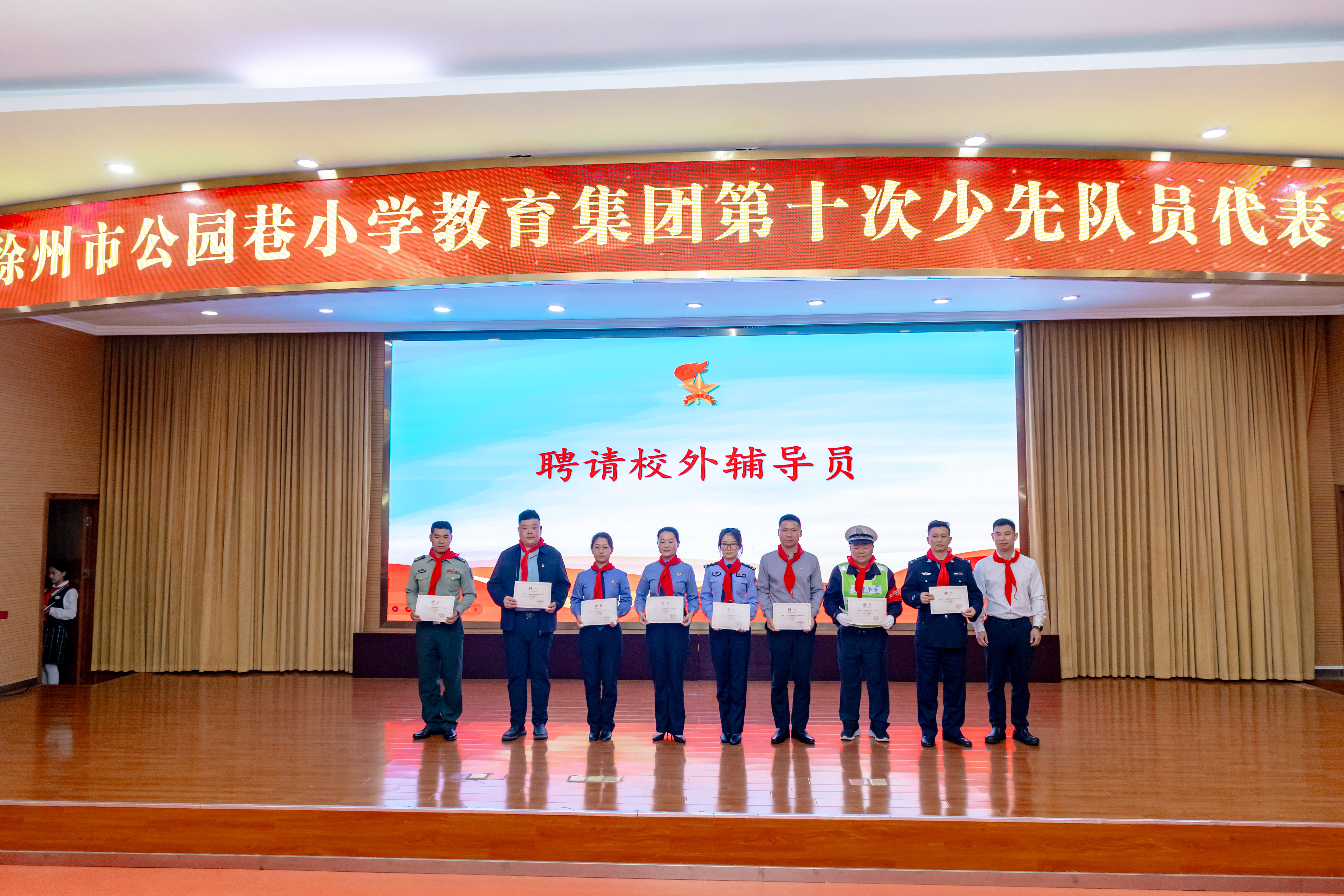 在辖区各学校的少先队员代表大会上,多位法治副校长受邀出席,与少先队员代表们面对面亲切交流。他们耐心倾听孩子们的心声,细致了解青少年成长过程中的需求与困惑。会上,法治副校长们正式受聘为学校“课外辅导员”——这张聘书不仅是一份荣誉,更是一份沉甸甸的责任,标志着法治副校长将以更常态化、更深度的方式参与校园法治文化建设,随时为孩子们解答成长路上的法律难题。