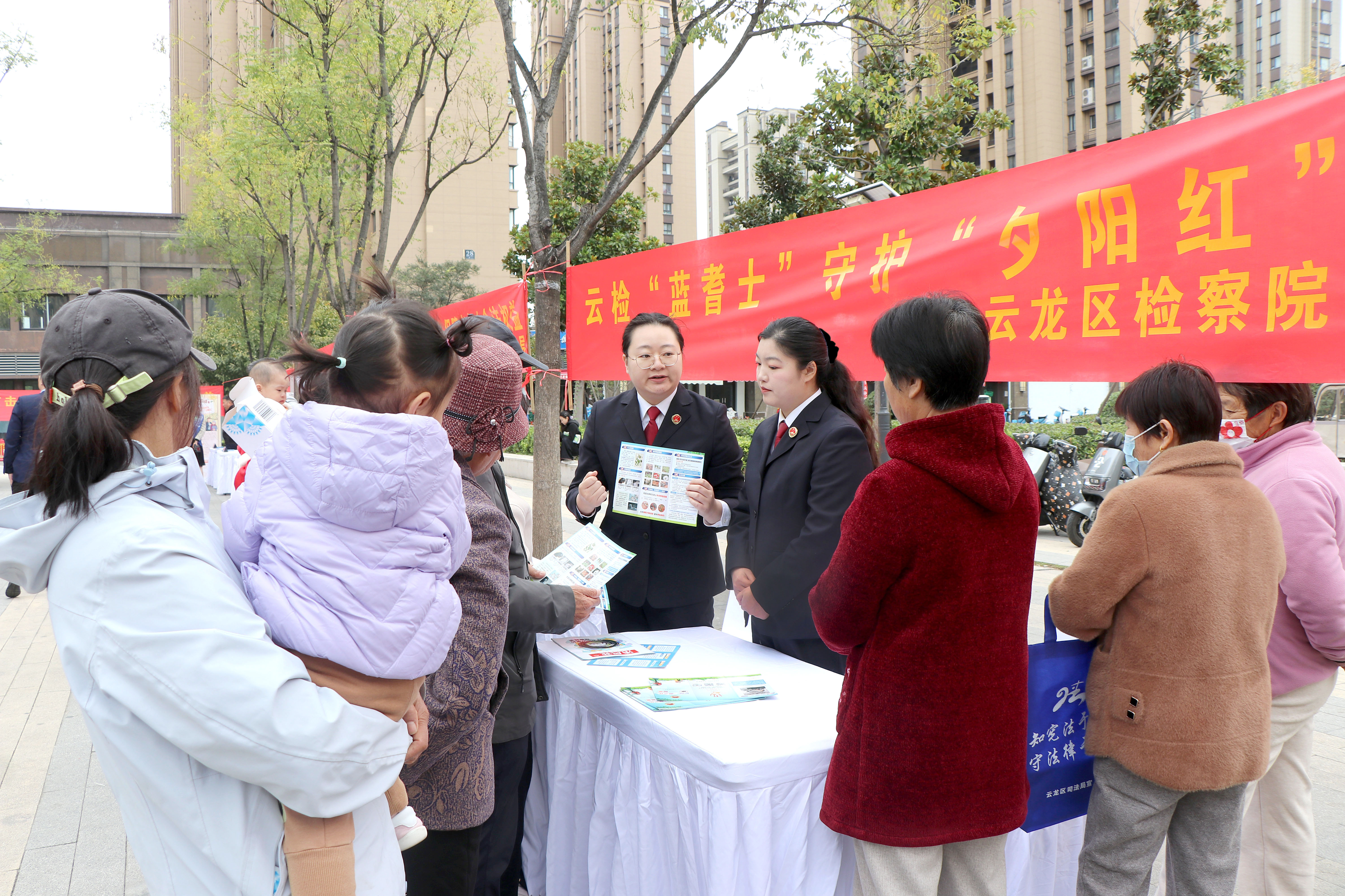 “敬老月”随着十月金秋如约而至,为弘扬中华民族尊老、爱老、敬老的传统美德,切实保护老年群体的合法权益,2025年10月21日,应徐州市云龙区老龄协会的号召,云龙区人民检察院“蓝耆士”党员志愿服务队来到民法典主题公园,开展以老年人法律维权为主题的咨询活动。