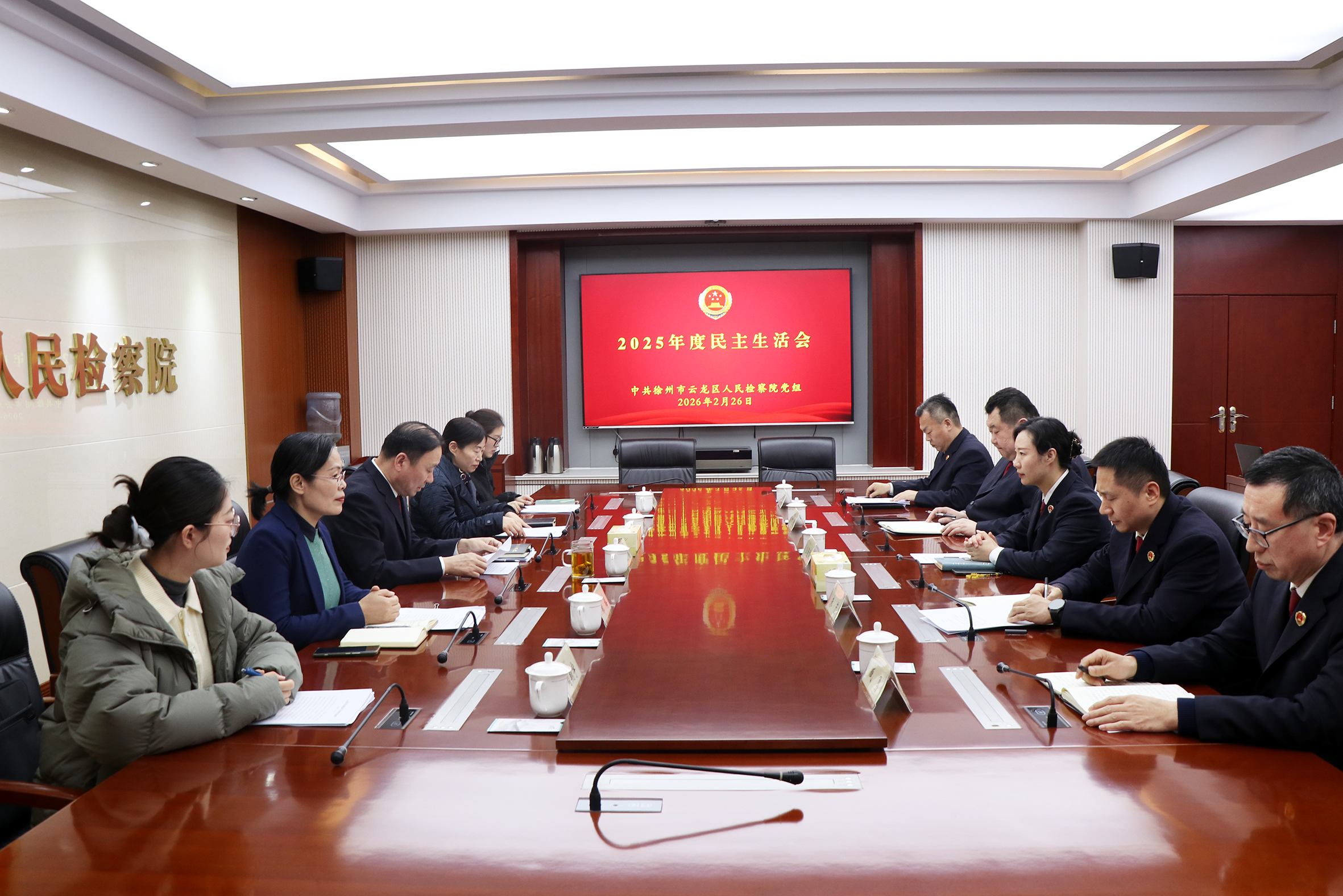 2月26日,徐州市云龙区人民检察院召开2025年度民主生活会。会议由院党组书记、检察长王林主持,区委政法委常务副书记曹银凤、区委第四督导组组长、区人力资源和社会保障局党组成员、副局长郑梅等一行到会指导,院领导班子成员参加会议。