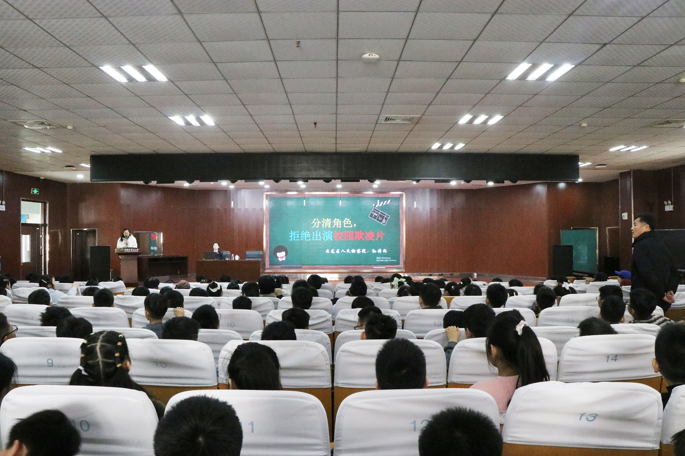 为进一步筑牢校园法治防线,引导未成年人明辨是非、远离校园欺凌,近日,徐州市云龙区人民检察院干警孙诗雨受邀走进华润小学报告厅,为五年级全体同学带来一堂主题为“分清角色,拒绝出演校园欺凌片”的法治课,用鲜活案例、趣味互动为孩子们传递反欺凌法治理念。
